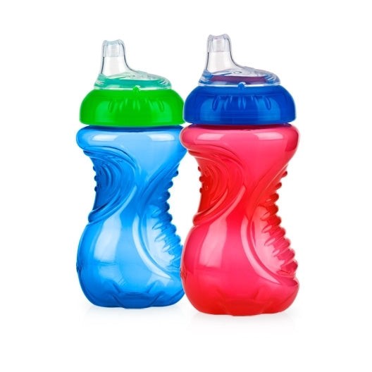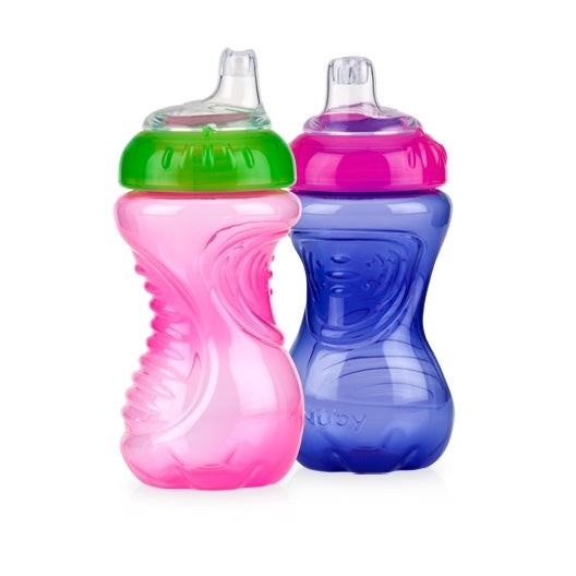 Now available in a 2 pack so you always have the cup you need! Engineered to make feeding and handling easier, designed with two people in mind, the No-Spill Cup is perfect for beginners. Your little one will find the transition from bottle to cup an easy one with the cup's soft silicone spout and the unique contour shape that easily fits their small hands. You will be delighted with the transition thanks to Nuby's valveless, leak resistant design. The soft silicone spout is uniquely designed to prevent drips and spills while being delicate and gentle to baby’s gums and emerging teeth. The pressure sensitive TOUCH-FLO feature regulates fluid intake with sucking action of child. When sucking action ceases, the spout closes, ensuring a leak resistant cup.