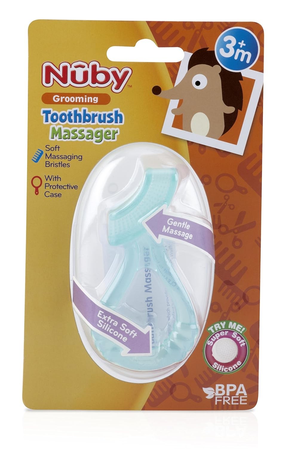 • Soft silicone bristles gently massage new teeth and gums