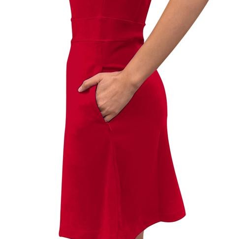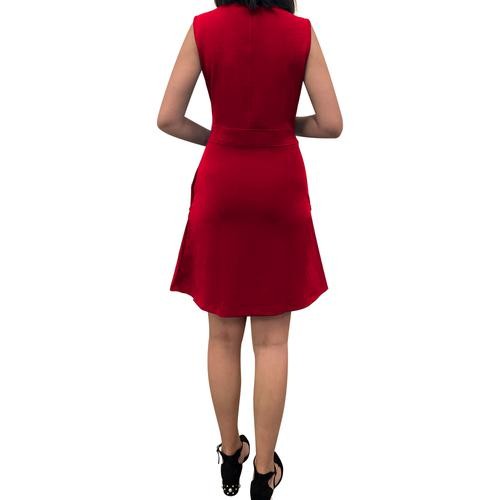 This elegant cocktail or meeting dress is an excellent outfit to wear at night, its elastic fabric is comfortable and soft with your skin, has a slight V-neckline, front pockets and a waist adjustment for a discreet tummy control that allows you to show off a perfect silhouette.