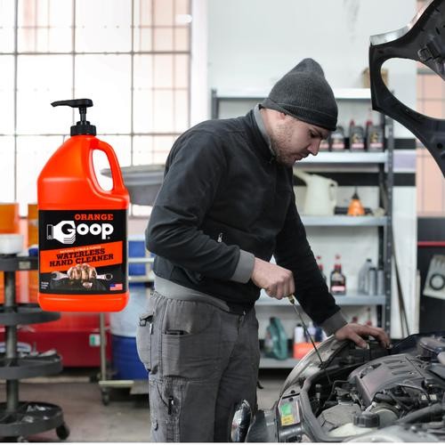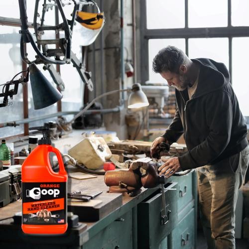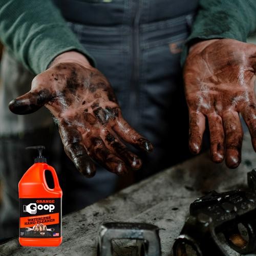 Orange GOOP is a gel hand cleaner with pumice stone to quickly remove stubborn dirt such as oil, grease, paint, paint, ink or tar. This dry hand cleaner leaves hands clean quickly. The cleansing action is exerted dry, just by rubbing the hands impregnated with the gel. Afterwards it is only necessary to rinse it dry with a clean cloth or wet, only with water.
