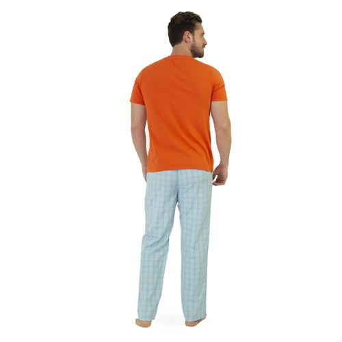 A men's pajama that feels comfortable, breathable, and cool during any time of the year, it can be worn as a set or just one garment, it is composed of a round neck t-shirt with short sleeves, plus a drawstring adjustable waist pants.