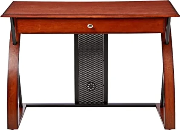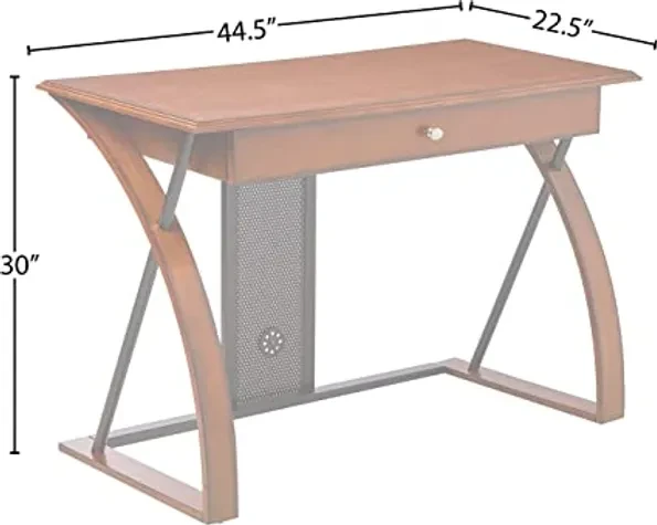 A stylish desk makes any home feel extremely grown up and oh so functional. The OSP Home Furnishings Aurora Computer Desk boasts regal design, featuring a rustic medium oak veneer with black powder coated accents to create a warm feeling throughout your home office. A pull out keyboard tray reduces surface clutter to create the perfect spot to pen your next literary masterpiece or create an awe-inspiring project flow chart. The sturdy construction and sizeable surface makes the OSP Home Furnishings Aurora Computer Desk perfect for users of varying shapes and sizes. A great first desk for students of all ages and genders, you will have this piece for years to come.