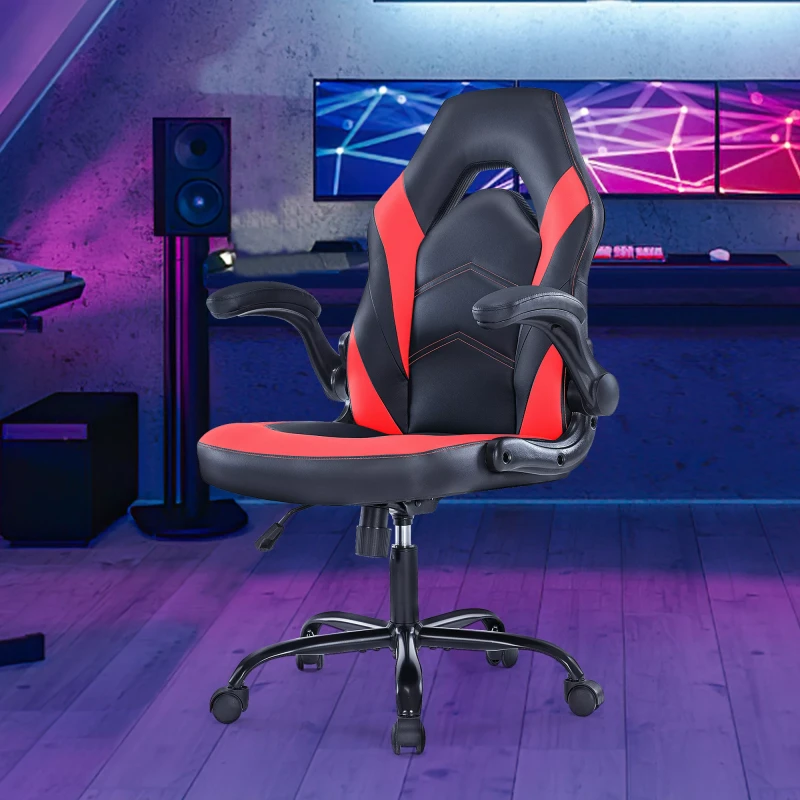 【Unique Design】 - The gaming chair is made of PU leather, comfortable and breathable, with multi-line elements and a hollowed-out back to highlight the design. There are 90°flip armrests to support the arms and back support. Upgraded cushion for more fullness and comfort.