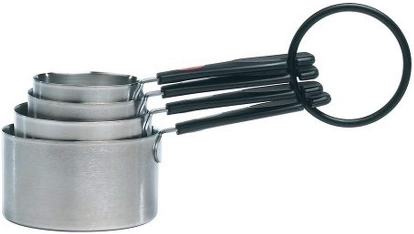 • Sturdy, stainless-steel measuring cups with non-slip handles