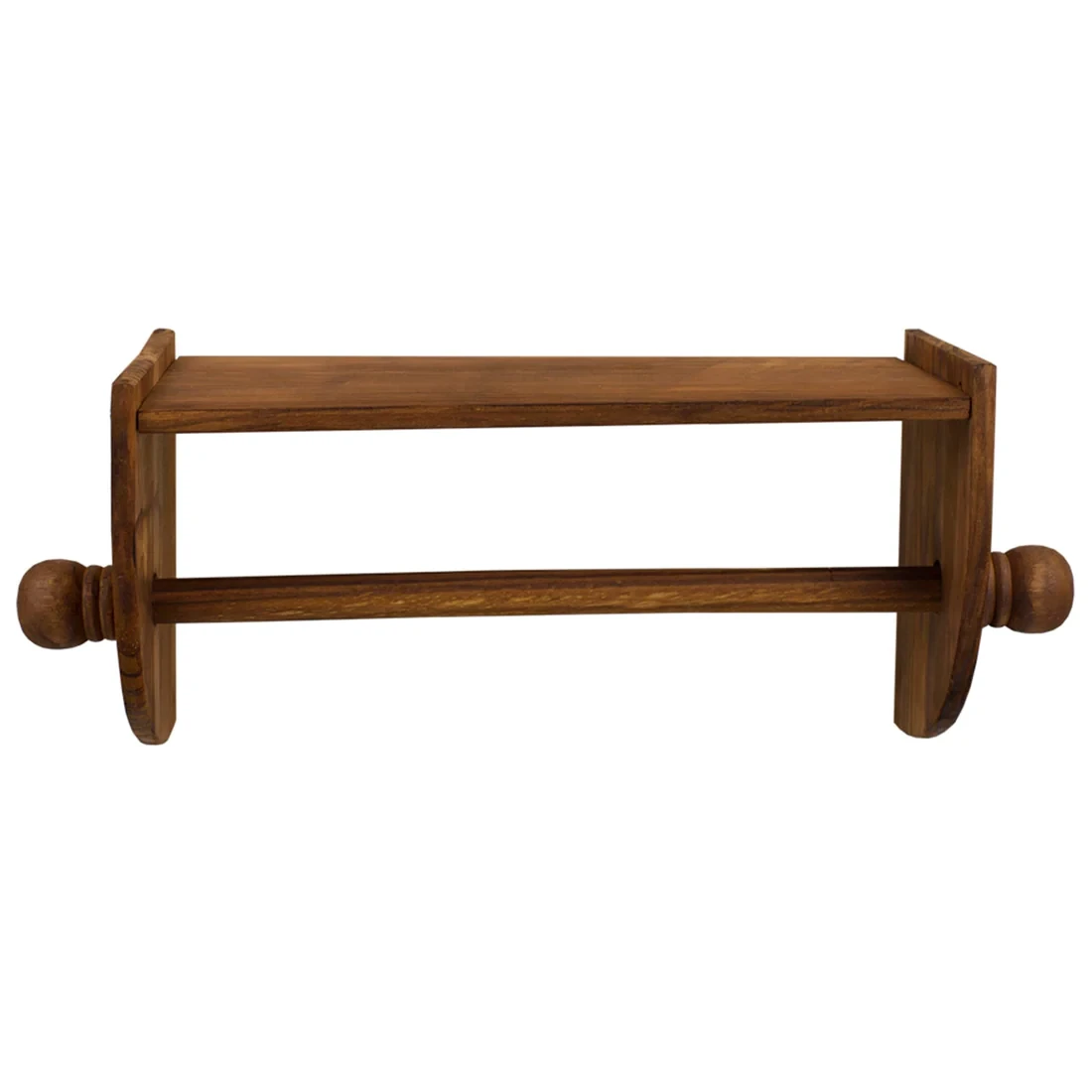 paper towel rack. Comfortably holding all types of size paper towel rolls, it comes with mounting hardware for easy set up right out of the packaging. The knobs at the end of the bar unscrew allow you to slip on a roll. The top also doubles as a practical storage shelf for storing you must-have kitchen items or as a creative decorative display above the sink. Spot clean.