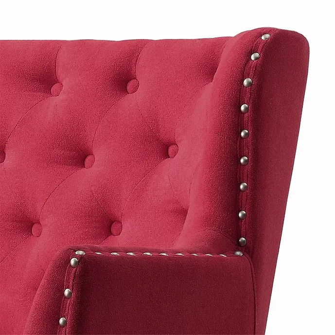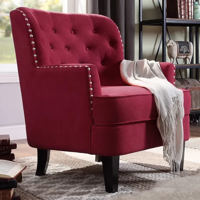 The chair is modelled from the European 18th-century style. Diamond tufted detailing on the back, over-sized side wings and arms give our version the familiar silhouette of this beloved chair. Every single nailhead studded detailing throughout means it's not stuffy in the least. This groundbreaking product brings together classic design elements, grand scale, and a relaxed rustic finish to create an impassioned marriage of casual opulence. Features also the solid wood turning front legs for a matching design, this chair will be the envy of your guests.