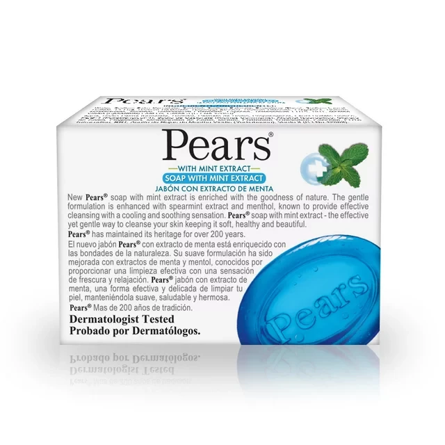 Originated in the UK by Andrew Pears who wanted to provide people with a soap that cleaned but was clean and free of harsh chemicals. Authentic soap making process since 1807, infused with the goodness of glycerin and natural oils that provide a clean nourished feel on skin. Dermatologically tested Bullet Points:Pure and Gentle since 1807 made with natural oils and infused with the goodness of mintover 200 years of authentic goodnessmint extract for optimum freshness Ingredients: Water, Sodium Palm Kernelate, Sorbitol, Sodium Palmate, Propylene Glycol, Sodium Lauryl Sulfate, PEG-4, Sodium Castorate, Isopropyl Alcohol, Sodium Chloride, Fragrance, Sodium Metabisulfite, Menthol, Tetrasodium Etidronate, Glycerin, Tetrasodium EDTA, BHT, Mentha Viridis (Spearmint) Lead Oil, FD&C Green 3 (CI No. 42053).
