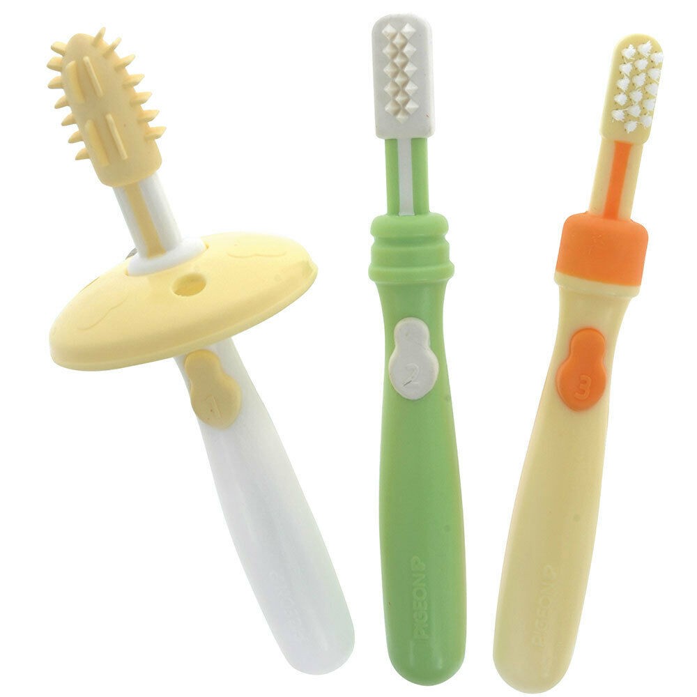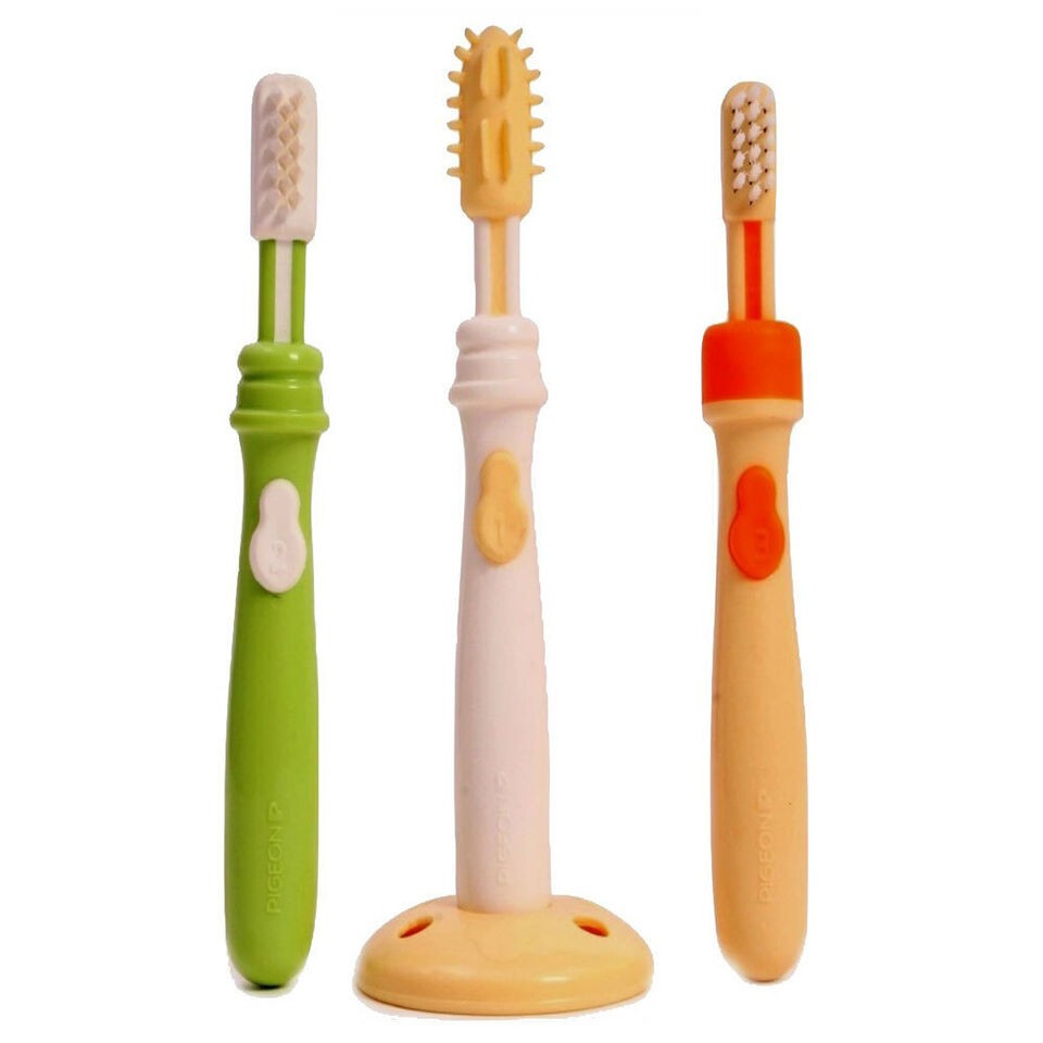 Pigeon Baby Toothbrush Set 1,2,3 (Teether):For Babies From 6-8 Months With 2-3 Milk Teeth, It Is The 1st Toothbrush And Introduces The Concept Of Holding A Toothbrush. The Thick And Contoured Handle Makes It Easy For Baby To Grasp.