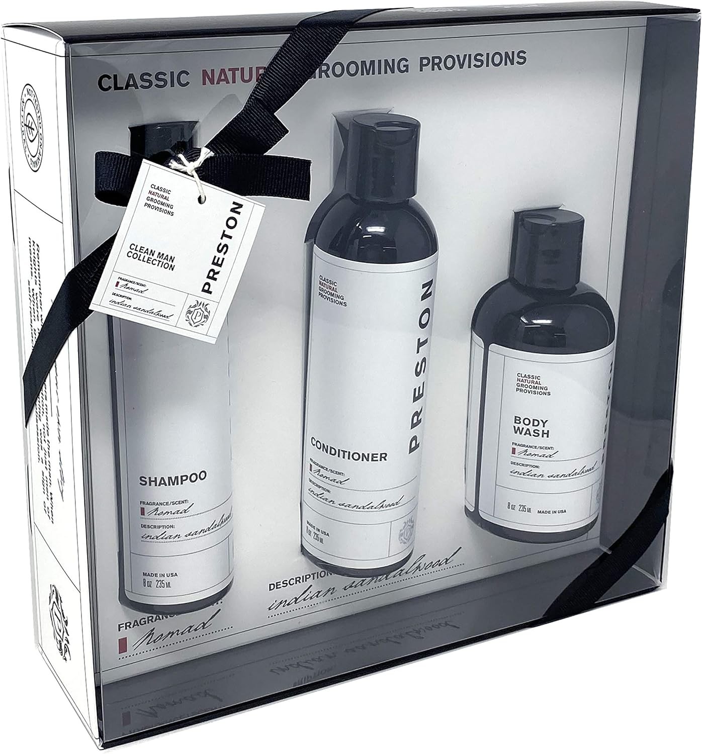 This gift set contains one 1 Shampoo, 1 Conditioner, and 1 body wash. The sulfate-free and non-toxic shampoo dissolves dirt and oil while volumizing and moisturizing your hair. Plant-based cleansers help remove product build-up while restoring your scalp pH. Keep your hair soft and healthy with this nourishing conditioner. Premium plant moisturizers help seal your strands, soothe your scalp, and add subtle shine. Clean up with this moisturizing body wash. Plant-based, sulfate-free cleansers get the job done without messing with your skin. Natural essential oils add a fresh scent.