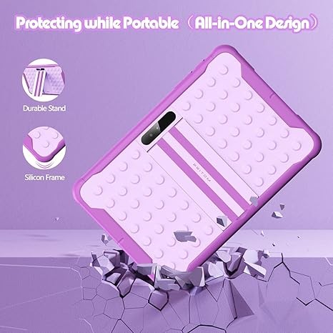 • [Durable Tablet with Case and Stand] - All-in-One designed (food-grade)silicone case and stand provides protection and support while keeping K10 lighter and smaller, which is more suitable for kids.The Case will reduce the possibility of the tablet being damaged while keep the tablet portable.And the stand behind the tablet let kids watching and video chatting with hands-free.(Suitable for kids 3 years+)
