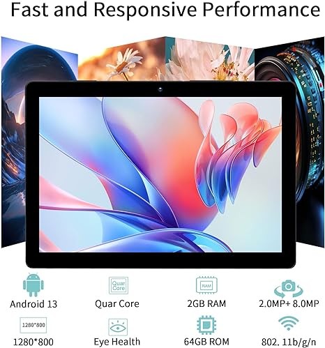 ★[HIGH PERFORMANCE ANDROID TABLET ] - Pritom Touch 10 tablets comes with REAL 2GB RAM, 64 GB ROM, the stable Android 13 Go system and energy-saving Quad-core Processor enables quicker app launch, smoother videos, you can enjoy better overall performance experience. In addition, it includes a Micro SD card slot (can be added a expanded 512 GB TF Card Max, NOT included), making it easy to store Pictures videos, files etc.