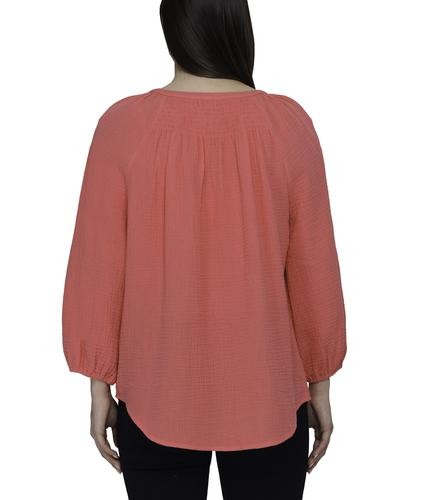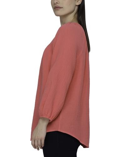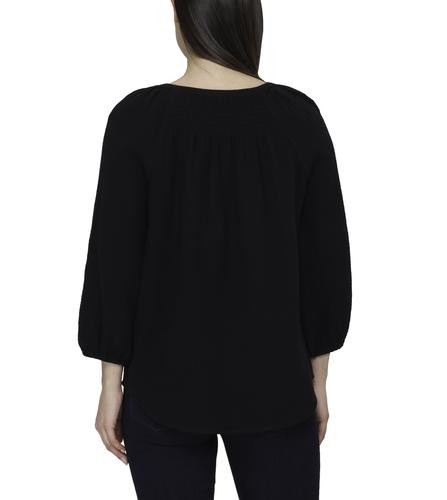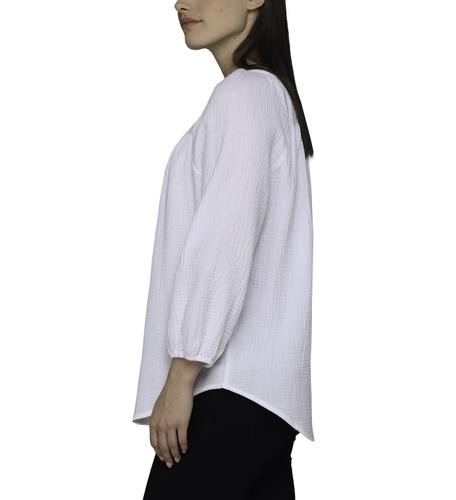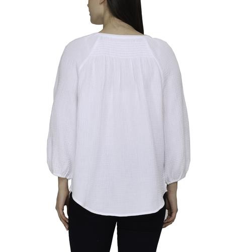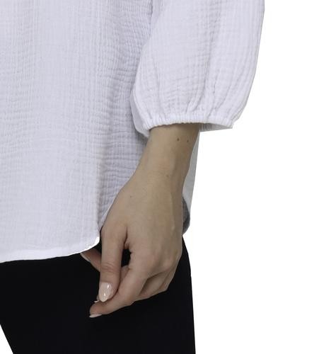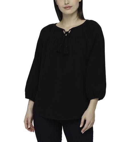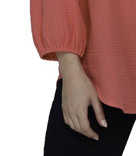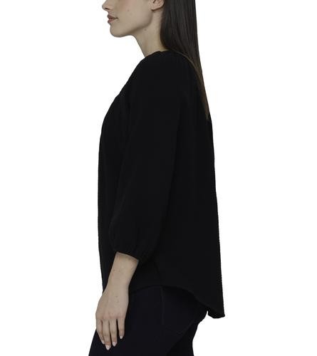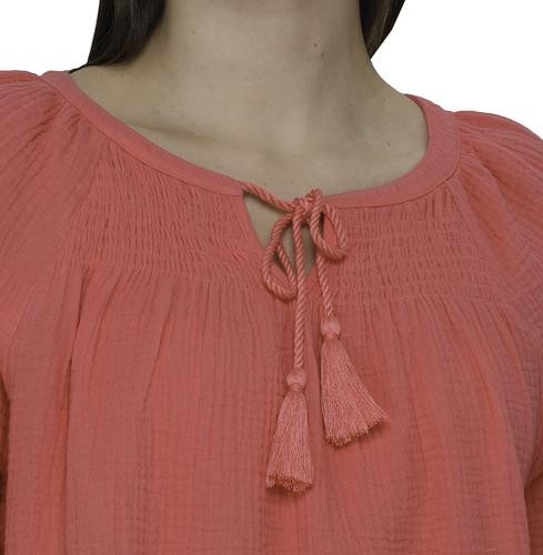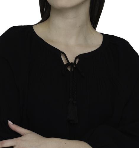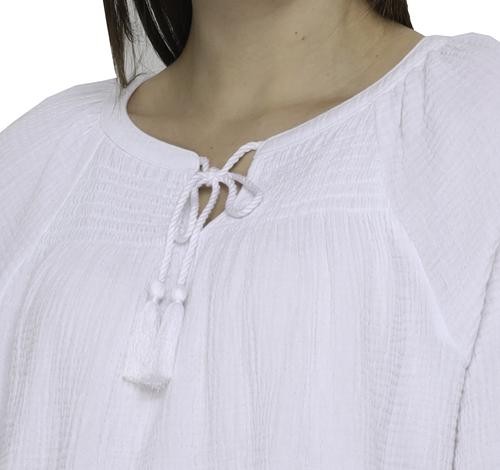 This beautiful blouse has a soft and fresh fabric, it will make you look feminine and fashionable. It features a V-neck with a slight neckline and laces with tassels to create a bow if you like, as well as three-quarter sleeves and elasticated opening.