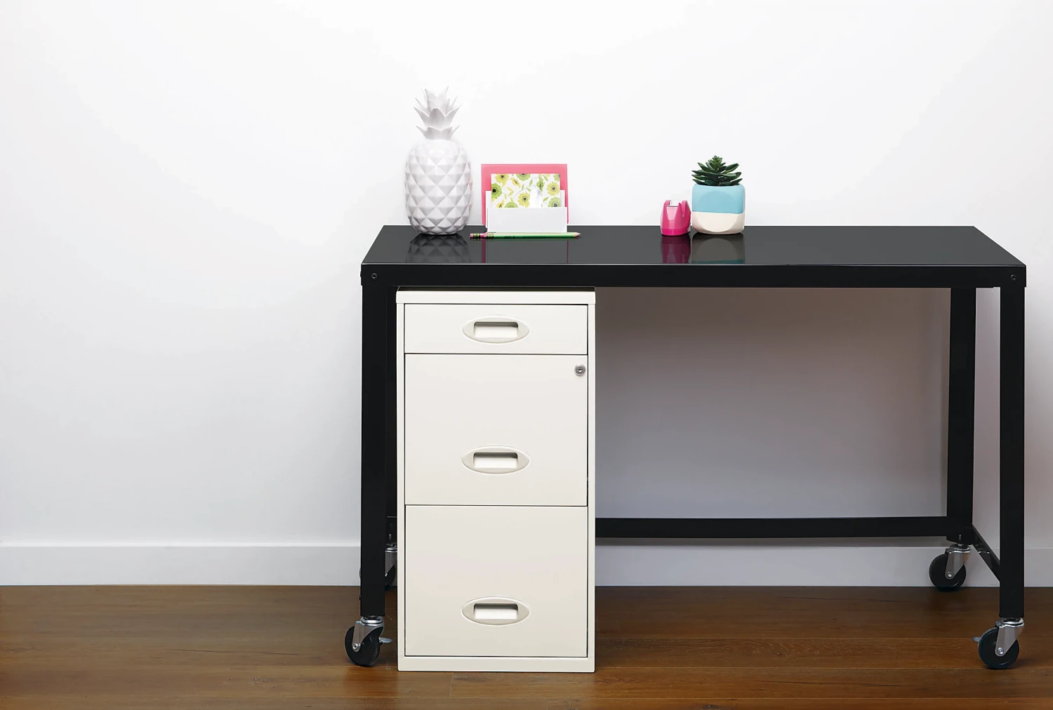 • 3 Drawer file cabinet in Pearl White matches a variety of design and styles.