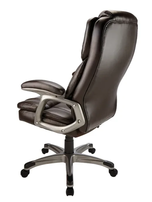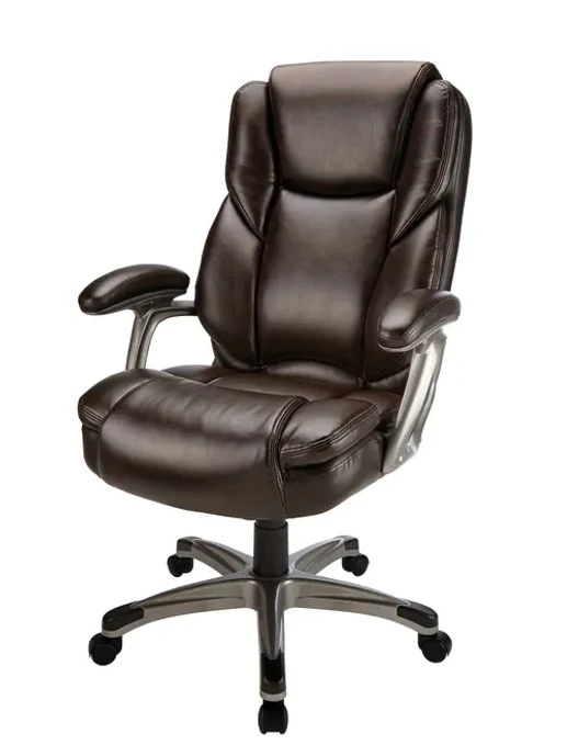 Equip your home or work office with this Realspace Cressfield high-back executive chair. The rolling base and swivel function allow easy maneuverability, while the bonded faux leather material provides a premium look and feel. An adjustable design allows hassle-free customization to match your preferences. This Realspace Cressfield high-back executive chair has a waterfall seat cushion to optimize blood circulation, and the tilt-lock and synchro-tilt mechanisms support easy reclining.