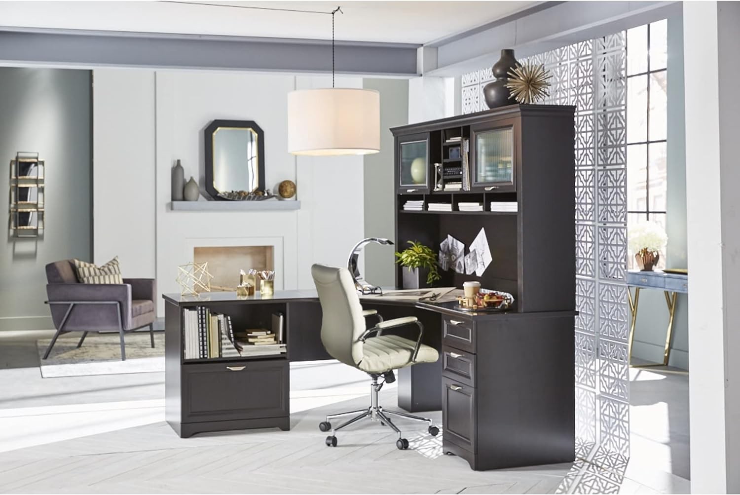 • When your computer, telephone and office essentials are centrally located at your office desk, optimizing your time during the workweek is that much simpler. Balancing elegant aesthetics and modern conveniences, this Magellan Performance 71"W desk has a concealed access point for cables and dedicated space for supplies, accessories and documents. Plus, this Realspace desk is equipped with a tray for your printer, so it's easier than ever to retrieve printouts.