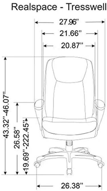 • Sit comfortably throughout the workday with this Realspace Treswell executive high-back chair. The bonded leather material delivers durability, while the color combination offers timeless appeal. Featuring a 5-star swivel base with built-in casters, this executive chair allows easy mobility and holds weights of up to 275 lbs. This Realspace Treswell executive high-back chair features a pneumatic handle for simple customization.