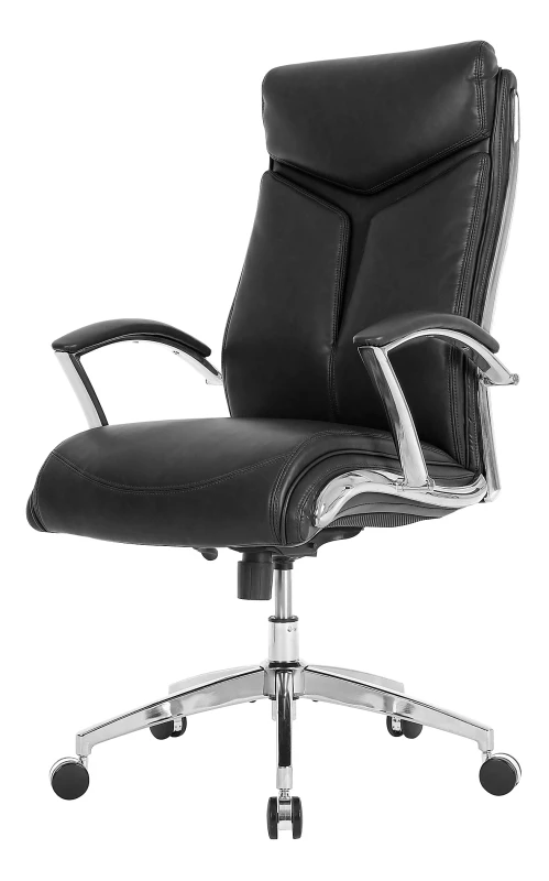 Working from home and writing your novel are that much more comfortable with the right high-back chair at your desk. Crafted for style and function, this Realspace Verismo bonded leather high-back chair minimizes body strains during lengthy work sessions and makes relaxing after a job well done easier with built-in lumbar support, a waterfall seat cushion and multiple adjustments. Leather office chairs provide an upscale look that complements your sophisticated taste.