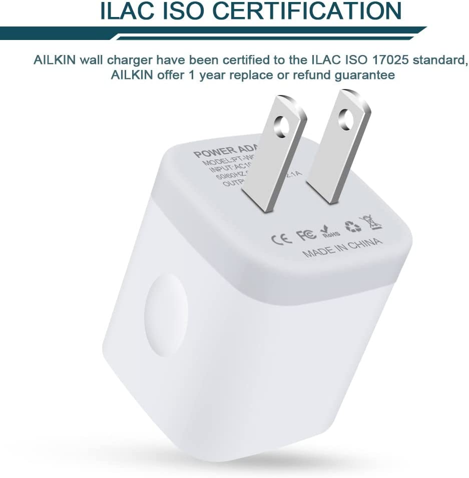 • Safety assurance: AILKIN'S charger block has a protection system against overcharging, over-currents, and overheating. The charger will automatically stop charging when power is full, which can maximumly protect your device.