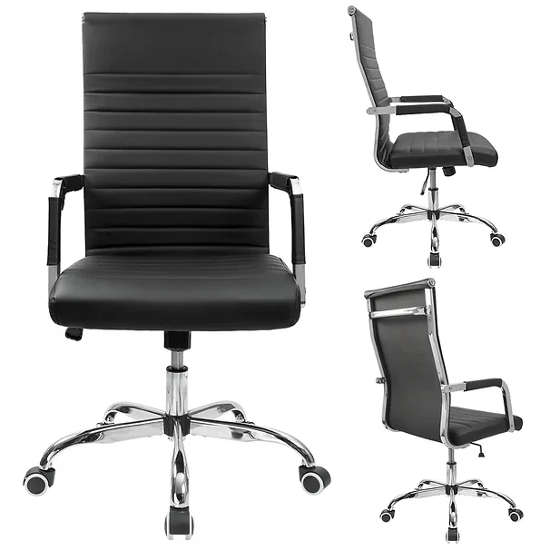 Upgraded seat: 3.15 inches thick padded seat for comfortable seating. Material: the smooth, pliable leather surface with ribbed stitching detail gives an upscale, luxurious feel. Higher back and lumbar design offer long time support from lumbar to head, provide continuous comfortable working time! Flexible adjusting: 360 degrees swivel design and adjustable height from16.7" to 19.9". Can meet various working occasions. Great office chairs in office, conference, home, colleague, reception desk, etc. Offer extra comfort for a long time.