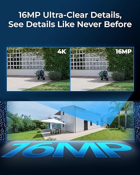 16MP UHD & COLOR NIGHT VISION: Featuring two 4K image sensors, this dual-lens camera brings 16 UHD clarity to you, ensuring no small detail goes unnoticed. The F1.6 super aperture and 1/2.7'' CMOS sensor enable greater light intake, while 6x infrared LED lights unveil all night details up to 100ft.