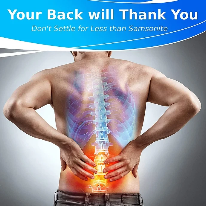 • ERGONOMIC DESIGN - Samsonite’s Lumbar Support Back Pillow follows the curve of your body, for a comfortable hold that fits and feels natural. The ergonomic design gently guides your body into a position which helps to reduce strain on your lower back. The pillow’s ability to improve your poster also encourages circulation, which helps to further relieve pressure or pain experienced in your lower back. It’s well-padded with memory foam, too, for comfortable day-long use. Measures 13.5” x 14” x 4.5”.