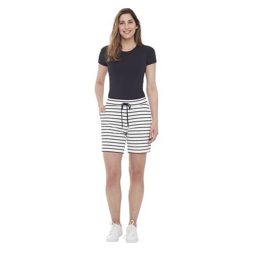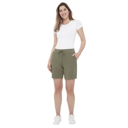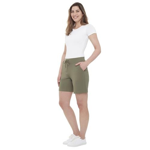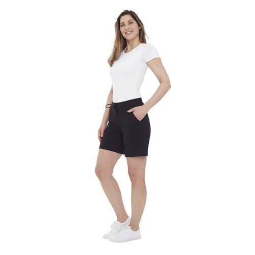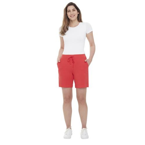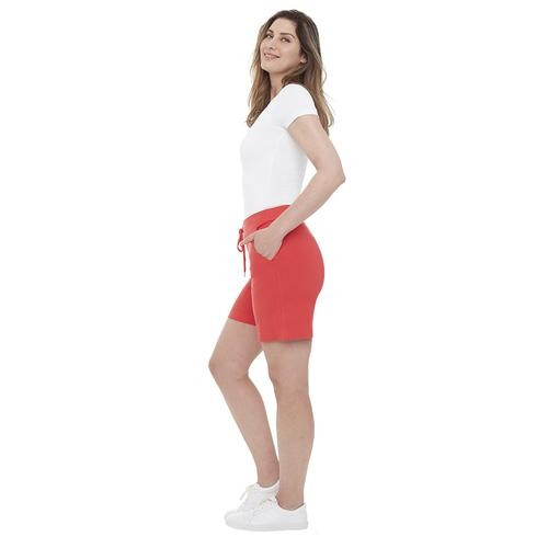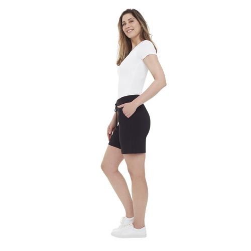 Ideal for a hot day or for sports, these shorts have a feminine design that fits your figure, feature an adjustable drawstring elastic waist, and two front pockets, and are cut above the knee with a breathable and flexible fabric.