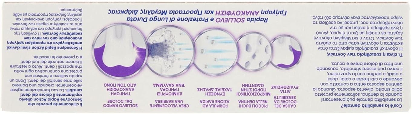 Sensodyne Rapid Relief Clinically proven relief Works in 60 seconds* Introducing the NEW Sensodyne Rapid Relief- a fast-acting toothpaste that provides clinically proven rapid and long lasting relief from sensitive teeth Sensodyne is the world's No. 1 toothpaste for sensitivity toothpaste. If you have sensitive teeth, switching to a sensitivity toothpaste such as Sensodyne can make a big difference in not only your enjoyment of everyday life, but in your overall oral health. Sensodyne toothpaste is the dentist recommended toothpaste for sensitivity, offering a range of specifically formulated toothpastes. Sensodyne toothpaste works to relieve tooth pain due to sensitive teeth and provides lasting protection all day, every day when used as directed. Since being introduced in 1961, Sensodyne toothpaste has become a well-recognized sensitive toothpaste with dentists around the world. In fact, in the US, 9 out of 10 dentists surveyed recommend Sensodyne toothpaste. Sensodyne toothpaste has clinically proven relief from sensitive teeth. More dentists recommend Sensodyne toothpaste than any other brand.
