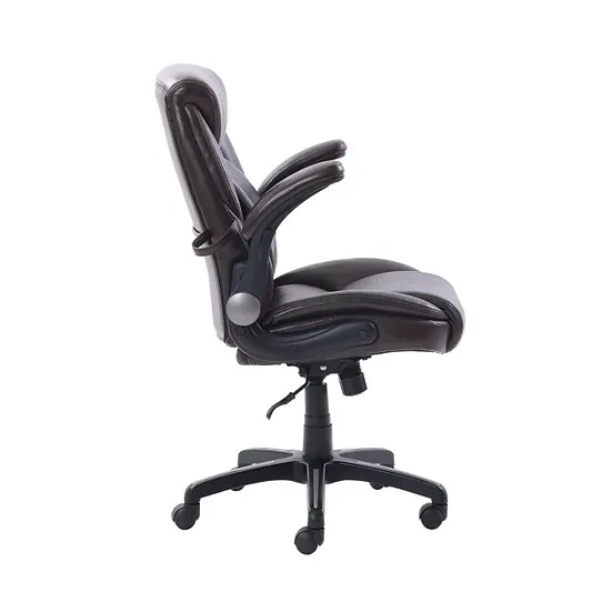 The Serta Manager's Office Chair is a performance office chair solution that combines comfort and style. The chair seat and back features a supportive AIR Lumbar system that adapts to your body movements to provide a continuous support experience. Individual coils in the seat provide additional support by distributing weight efficiently to maximize comfort all day long. Ergonomic flip-up armrests maintain comfort for work or gaming. Seat height is adjusted with easy-to-use gas lift. The versatile chair also features tilt and tension controls and rolls smoothly on a stable 5-star base with casters. Upholstered with rich bonded leather, this chair is perfect for home or office use. Store headphones or other office accessories in the convenient rear pouch and headphone loop.