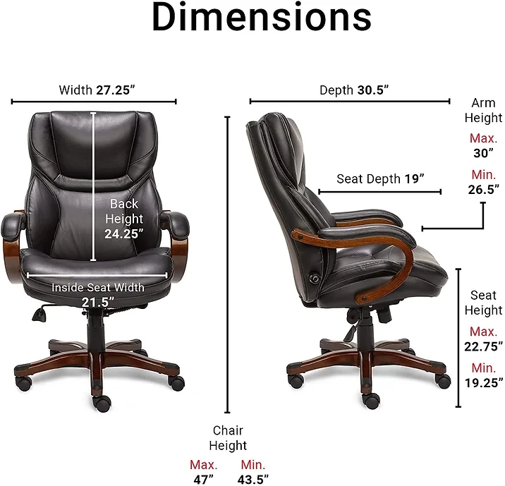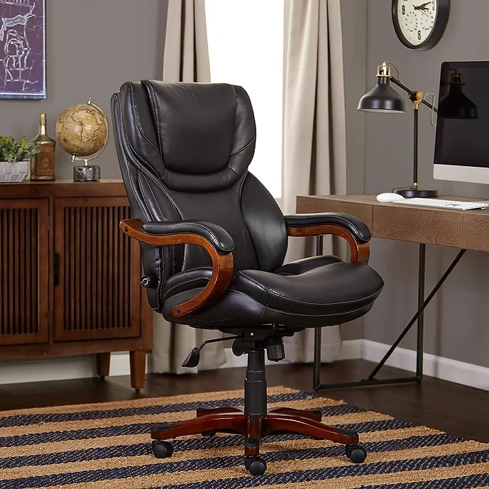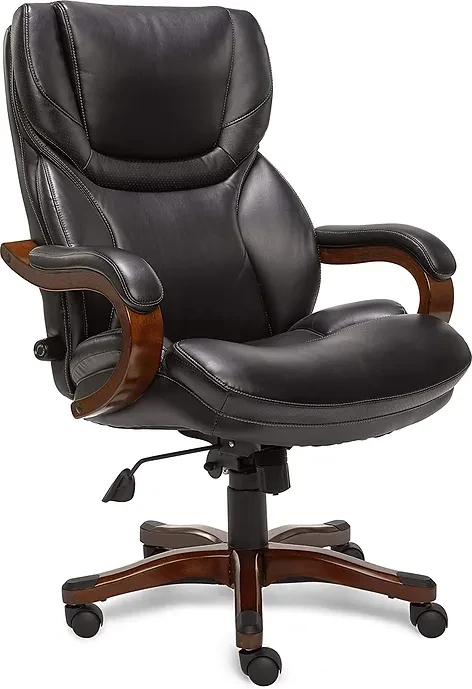 Serta® Big And Tall Bonded Leather High-Back Office Chair, Black/Dark Redwood