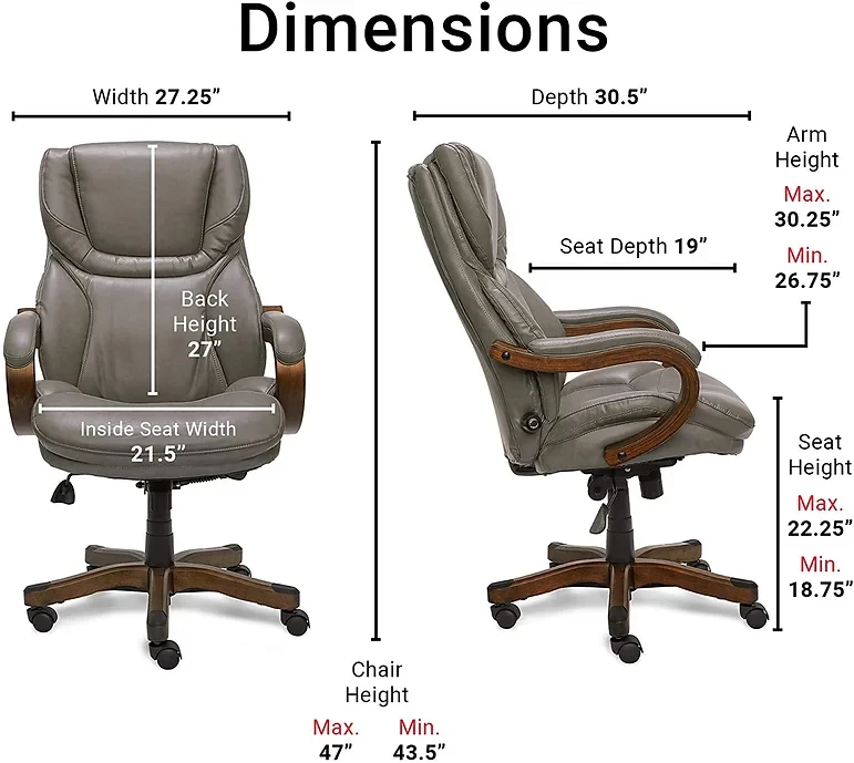 Serta Big and Tall Executive Office Chair with Wood Accents Adjustable High Back