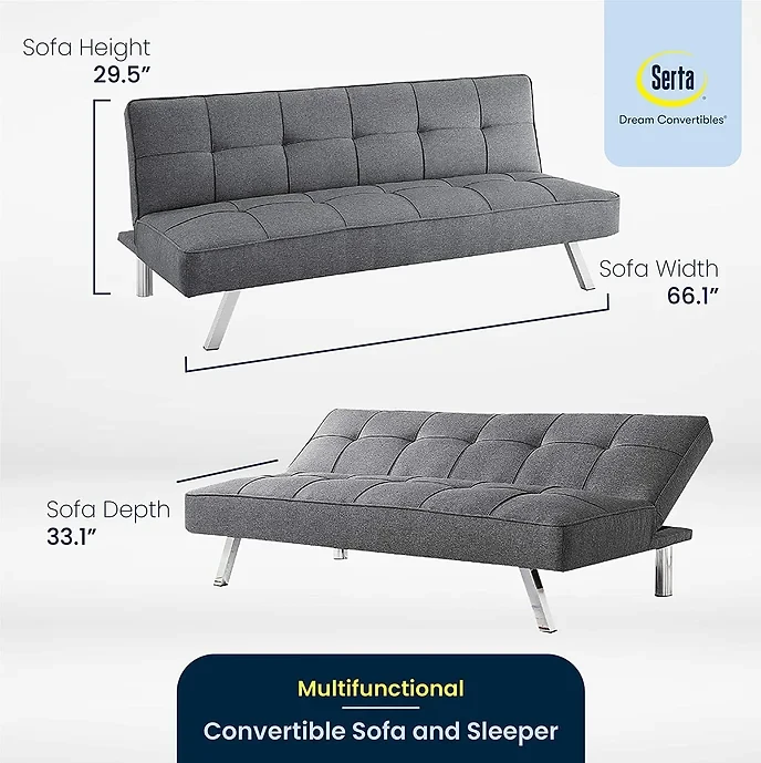 • BEAUTY: This futuristic, convertible sofa has a sleek silhouette with high-density foam, tufted seat and back, and modern chrome legs. This beautiful and versatile sofa is easy to assemble with the tools included.