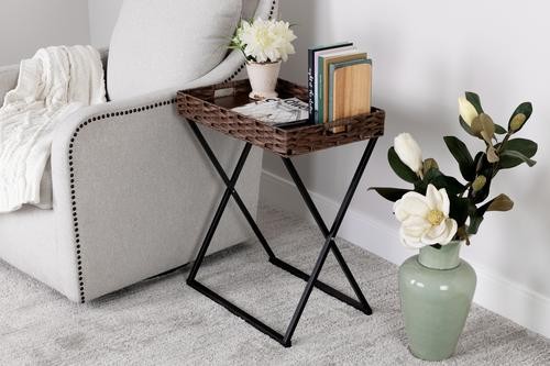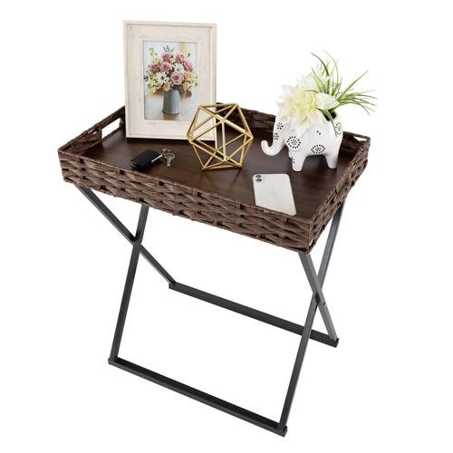 This folding tray table has cut-in handles for easy carry, you can take it everywhere you need! Can be used with or without the folding frame. Features an MDF base and a metallic Grey frame. You can fold it flat when not in use for saving space.