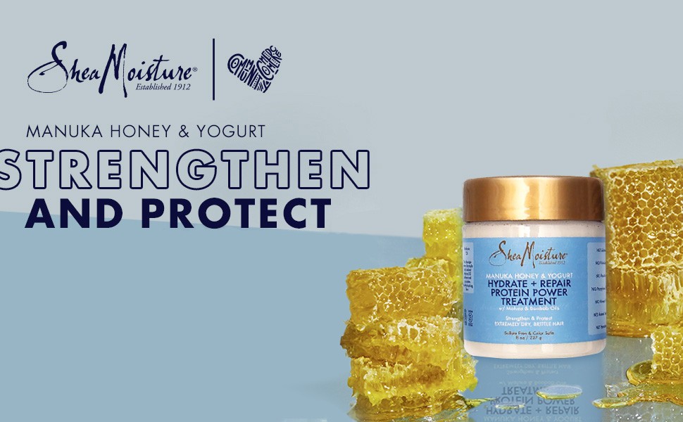 SheaMoisture’s Manuka Honey & Yogurt Hydrate + Repair Protein-Strong Treatment with Mafura & Baobab Oils is powered by reparative proteins and butters, in a nutrient rich strengthening cream to naturally reinforce and revitalize over-processed, abused hair fibers.