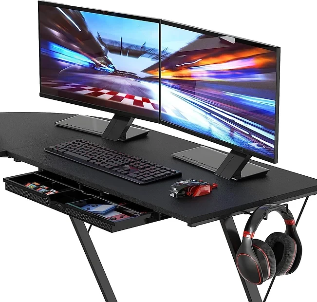 SHW Vista L-Shape Desk with Monitor Stand, Black