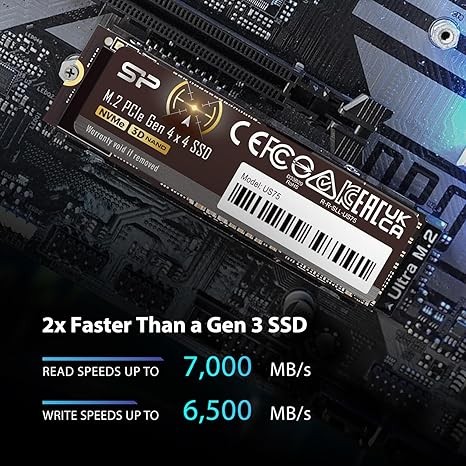 Silicon Power 1TB US75 Nvme PCIe Gen4 M.2 2280 SSD R/W Up to 7,000/6,500 MB/s Compatible with Playstation 5 (SP01KGBP44US7505)