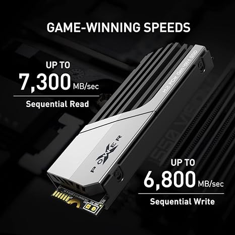 Silicon Power 1TB XS70 Nvme PCIe Gen4 M.2 2280 SSD R/W Up to 7,300/6,000 MB/s, DRAM Cache, with Built-in PS5 Heatsink, Compatible with Playstation 5 (SP01KGBP44XS7005)