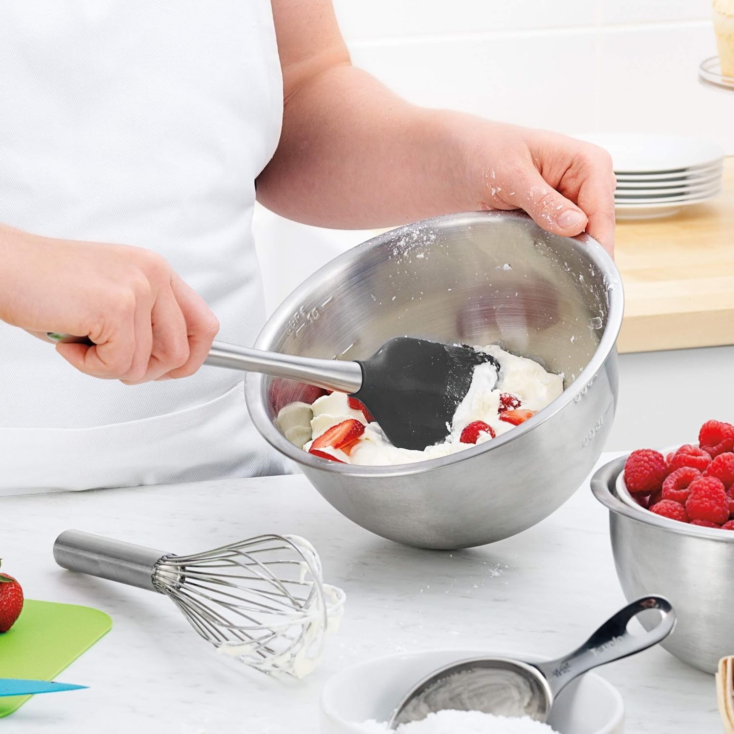 • . Tovolo's Flex-Core Stainless Steel Handled Spatulas have an ergonomically shaped handle allowing for a comfortable grip; making them perfect for mixing, folding, serving, spreading, scraping and flipping