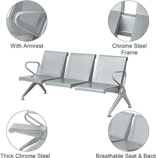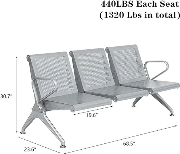 • Excellent Quality Lobby Furniture:  heavy duty waiting chair is made of high quality stainless steel and the overall frame is strong and durable. Selected materials can prevent rust and have a longer service life. The maximum weight capacity per seat is 440 pounds.