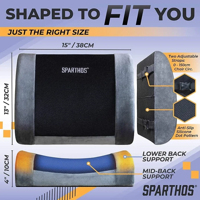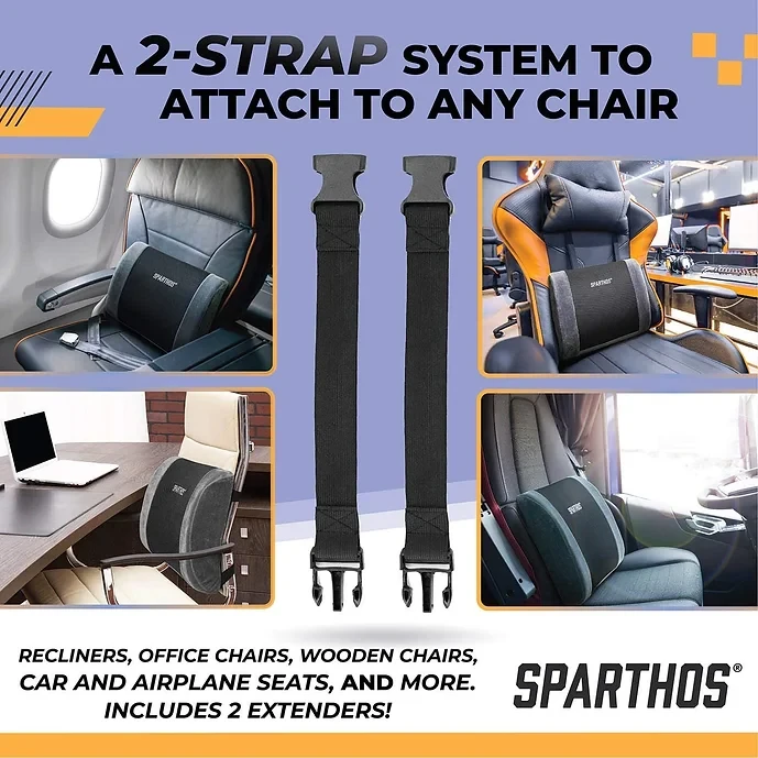 • ✅ BETTER POSTURE - Sparthos Lumbar Support Pillow is ruggedly designed to support you all day and every day. Place the pillow behind you, secure it with two straps that fit any chair, and you'll notice the difference immediately in comfort and overall lower back health.