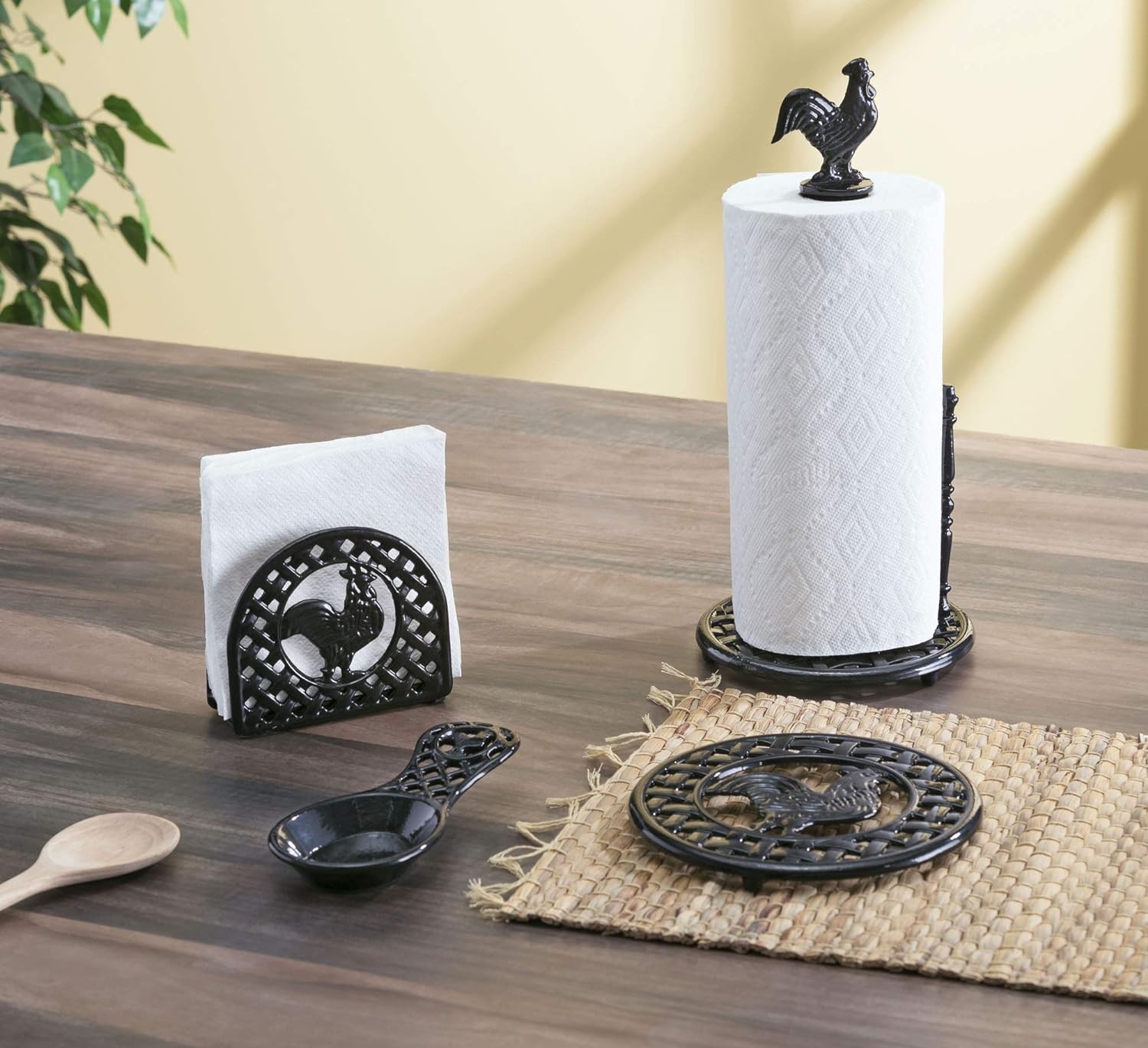 • Home Basics cast iron spoon rest part of the Rooster collection. Made from sturdy and durable cast iron. 7.5" x 3.5" x 1.3"