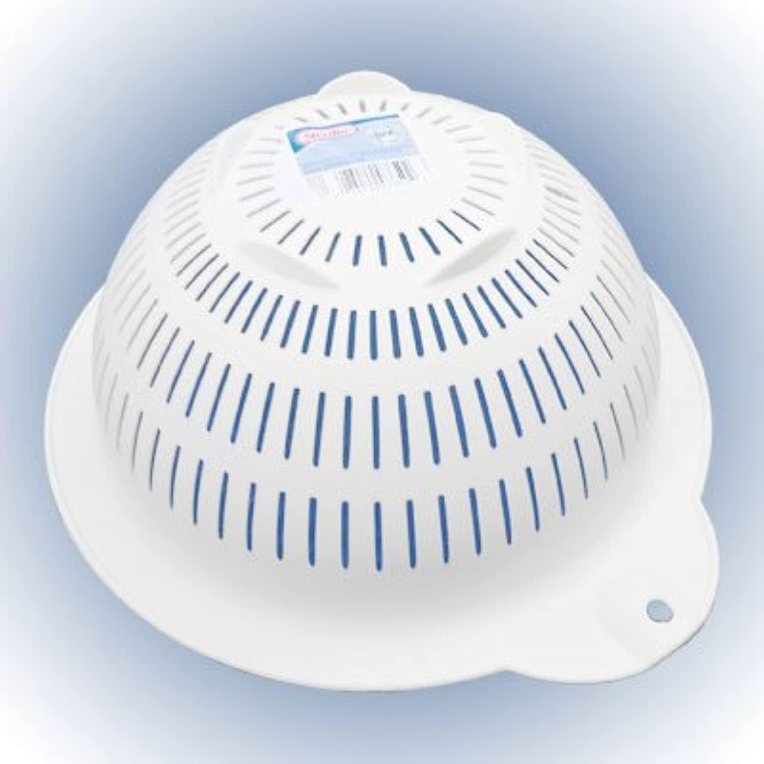 The Colander offers slits for draining and a large flat rim for gripping or resting on the edge of a pot. A convenient hole in the rim allows for storage on a hook. The colander is durable and dishwasher safe for easy cleaning. All Sterilite food preparation products are BPA-free and phthalate-free.