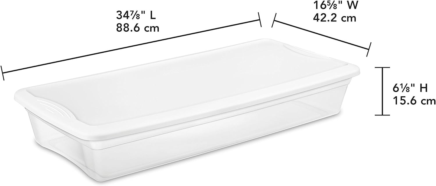 Sterilite 19608006 Underbed Box Storage 41 Quart See Through Base White Lid