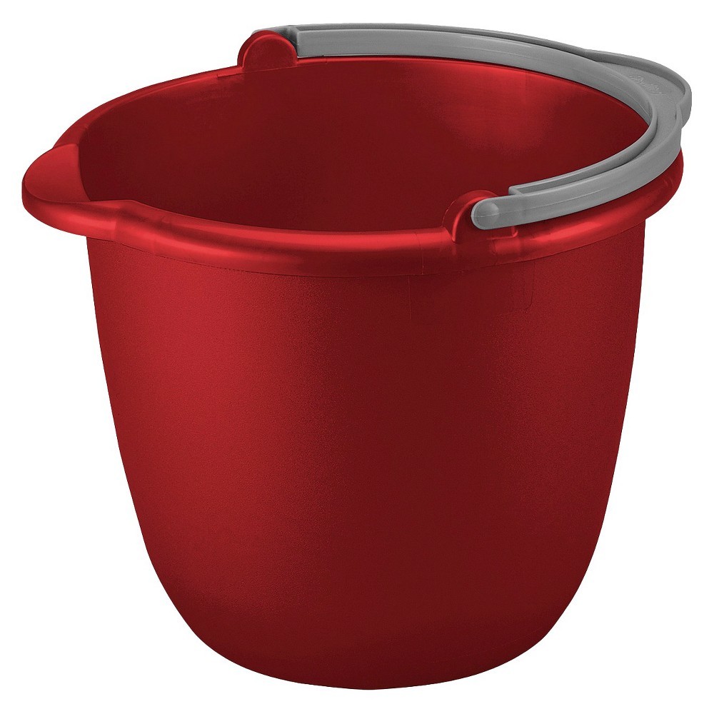 Fill, pour and clean with ease using the Sterilite 10 Quart Spout Pail. It is designed with a large opening to accommodate a mop, along with a narrow spout for smooth, controlled pouring, helping to reduce messes and spills. The color-accented handle provides a comfortable grip surface for stable and easy transporting of the contents inside. The pail offers durable construction with a reinforced rim, an easy-to-clean surface and a generous 10 quart capacity. This spout pail is ideal for a variety of basic household needs such as general household cleaning projects, washing a vehicle or for use in mopping around the home. Empty pails also nest for efficient storage when not in use. The overall assembled dimensions of this item are 11 1/4" L x 10" W x 11 3/4" H.