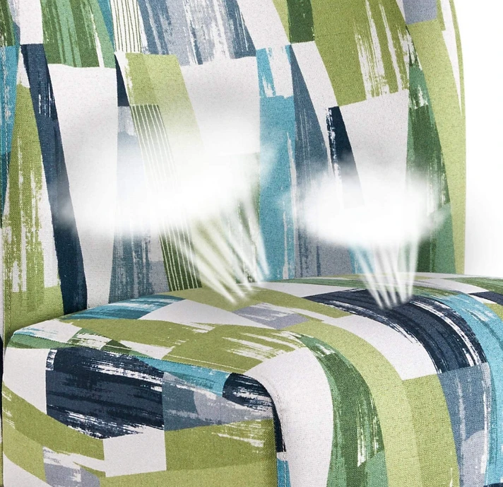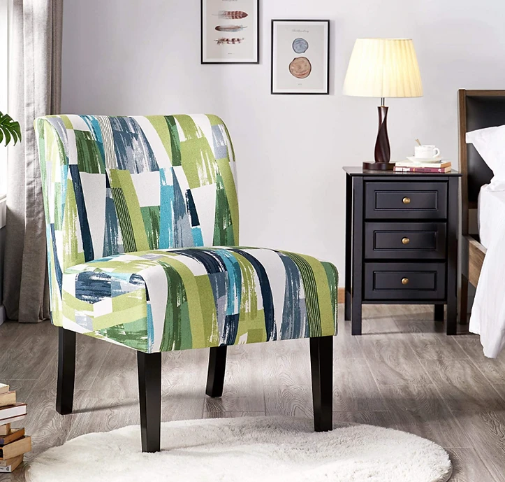 The armless sofa has sapphire and white printing patterns, matching black wooden legs. The chic and elegant appearance makes it blend in your house perfectly and ideally.