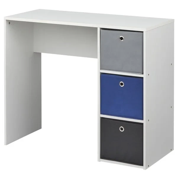 This is well-suited for creating a study area for your child. This student desk features an ample writing space and three colorful, fabric storage bins. These bins can hold art supplies, books, projects, and more. Also, the fabric bins on this wood writing desk can be removed and folded.