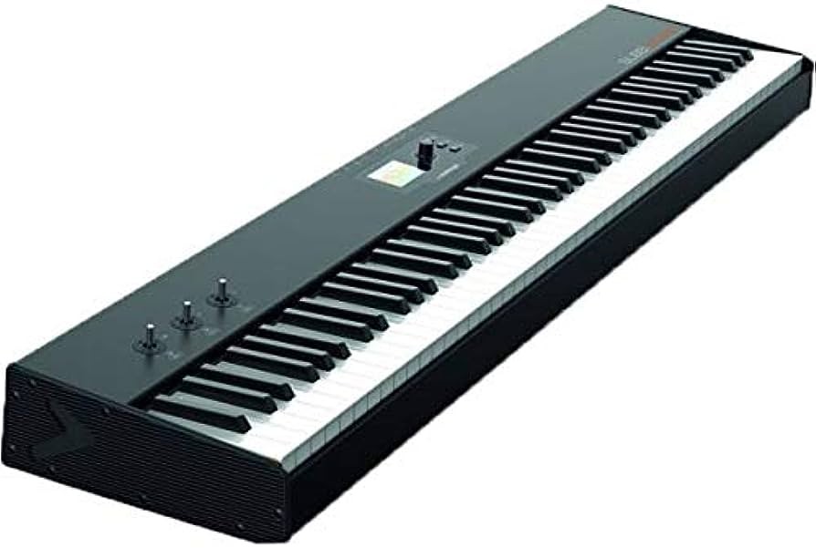 88-key graded hammer action keyboard Real wooden keys with ivory touch Three contacts per key with note-on and note-off velocity + after touch 6-way control knob; 3 function buttons; 4 programmable zones; 4 programmable pedals connectors; 3 programmable sticks controllers TFT Color graphic display (320x240) with intuitive navigation