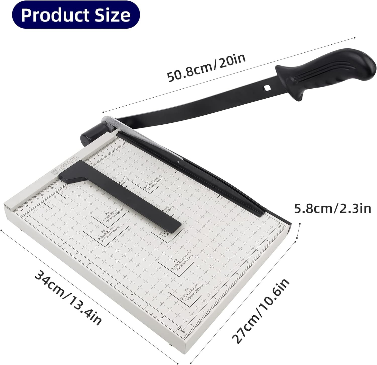 • 【Multi-scene Use】-- Manual paper cutter without power supply can meet various cutting requirements, such as paper, photos, pictures, labels, business cards and other paper products, as well as thin metal sheets below 0.3mm/0.01in, suitable for paper DIY handicraft production. It is the partner for office, school, home, printing house and photo studio