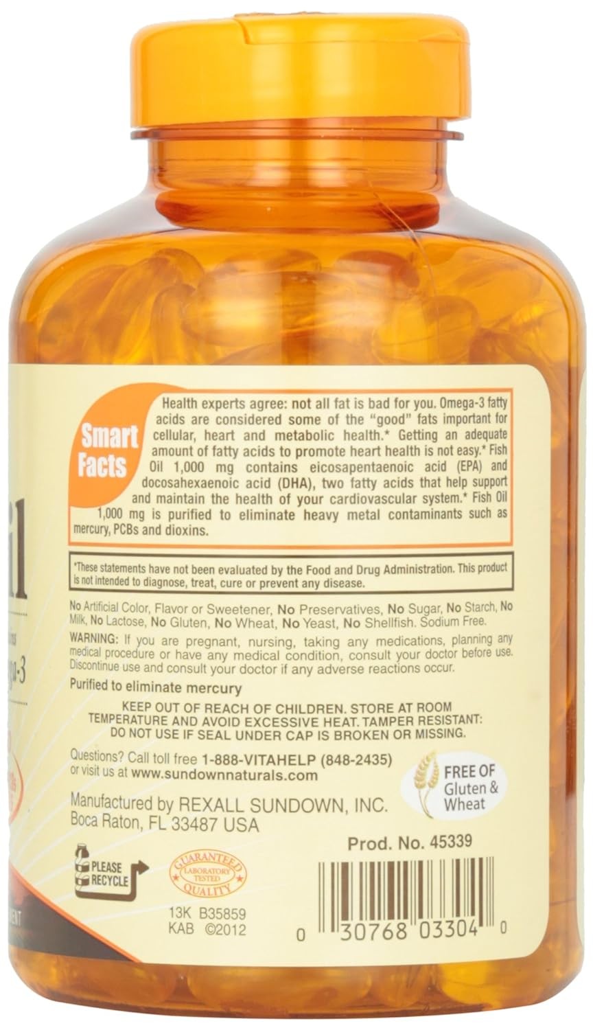 Sundown, Fish Oil 1000 Mg Softgels, 200 ct