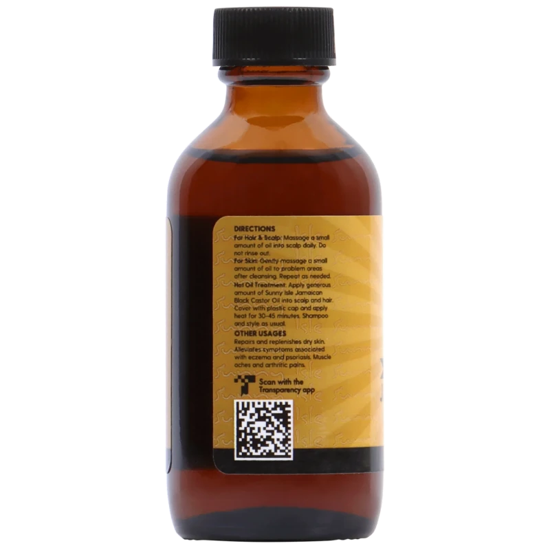 Sunny Isle Original Authentic Jamaican Black Castor Oil 2 Oz. Say goodbye to dull, damaged, hair and hello to healthy, shiny hair with The Original Sunny Isle Jamaican Black Castor Oil. A proven effective hair and skin care product, this oil treats dry, damaged hair, regrowing and strengthening it from root to tip. It works well for lengthening and thickening eyebrows and eyelashes, and is an effective treatment for acne. With a variety of uses for Jamaican Black Castor Oil, it's an all-round, good natural product to incorporate into your daily beauty routine. Our Original JBCO formula has a medium consistency, a light ashy aroma and a high ash content, ideal for regrowing damaged, dry or fading hair. Sunny Isle's organic castor seeds are roasted and ground by a manual grinder and then the crushed beans are boiled to extract the 100% pure, dark brown, organic oil. It's the best quality oil on the market. Benefits: Organic and authentic castor oil processed the traditional Jamaican way. Stimulates hair growth for all hair types. Helps to regrow hair in bald spots from alopecia (hair loss), chemical treatment and stress. Can be used for eyelash and eyebrow growth. Works as an effective moisturizer for hair and skin. Natural acne treatment. Great for acne prone skin. Thick and rich formula that's most effective for skin and hair conditions. Strengthens and increases the length of your hair faster than any other brand on the market today. No salt added.