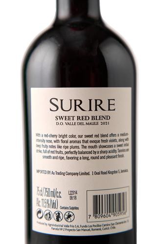 If you are looking for a sweet red wine with a fruity touch, Surire is the perfect choice! This 750 ml bottle contains a delicious blend of sweet reds with notes of fresh violets and ripe plums. Its bright cherry red color is an invitation to enjoy its medium-intensity nose and balanced flavor, with an initial sweet red fruit hit and a sharp acidity that will make you want to keep tasting. In addition, the soft and ripe tannins favor a round and pleasant finish on the palate. Don't wait any longer to enjoy a unique sensory experience with Surire Red Wine!